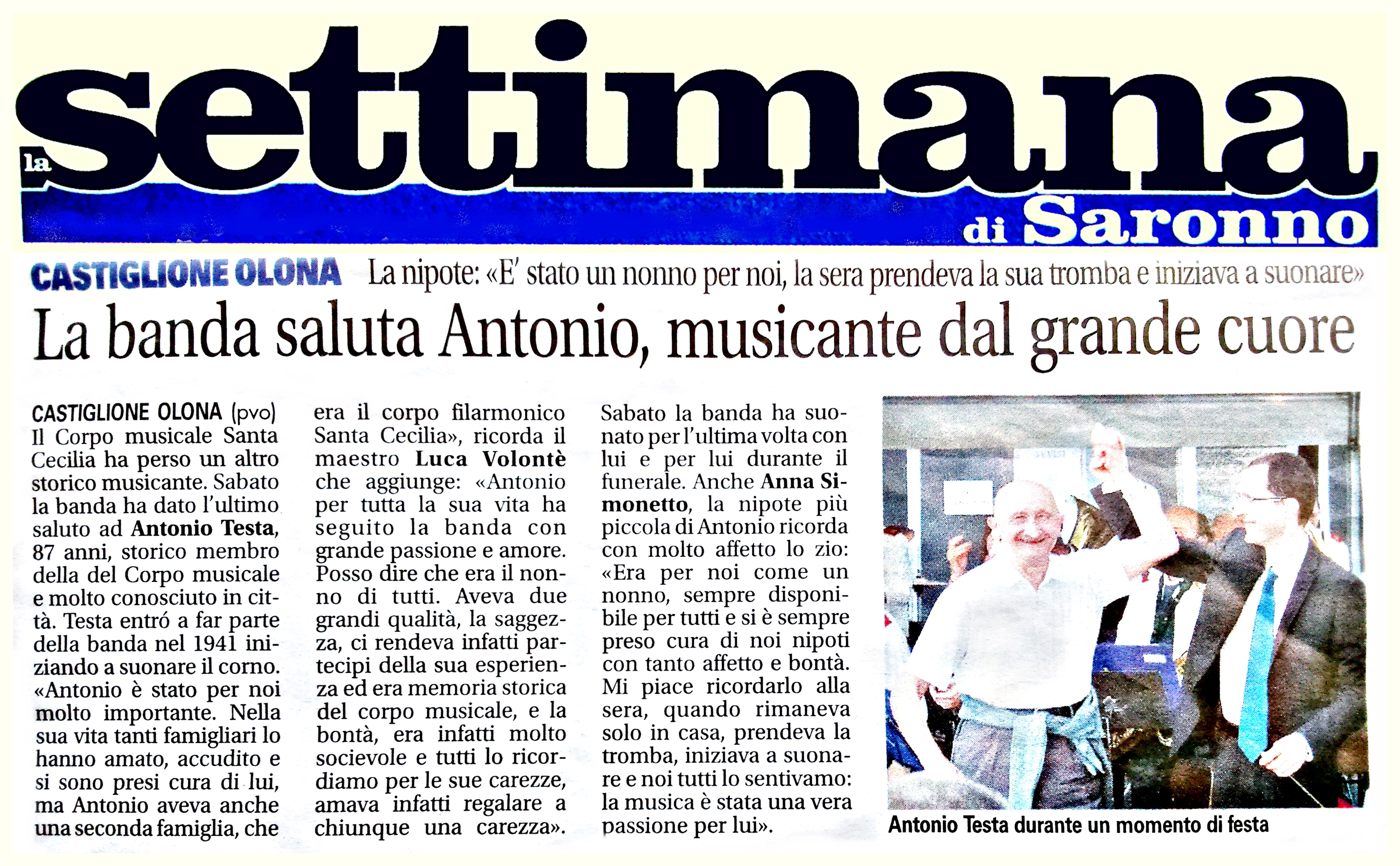« La banda saluta Antonio, musicante dal grande cuore »